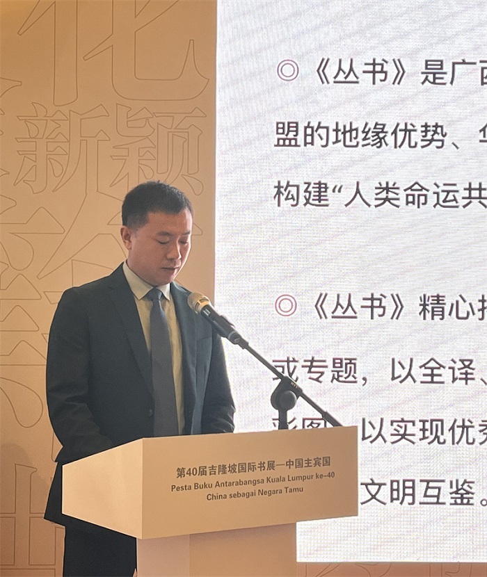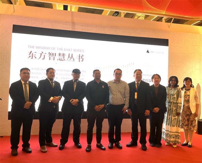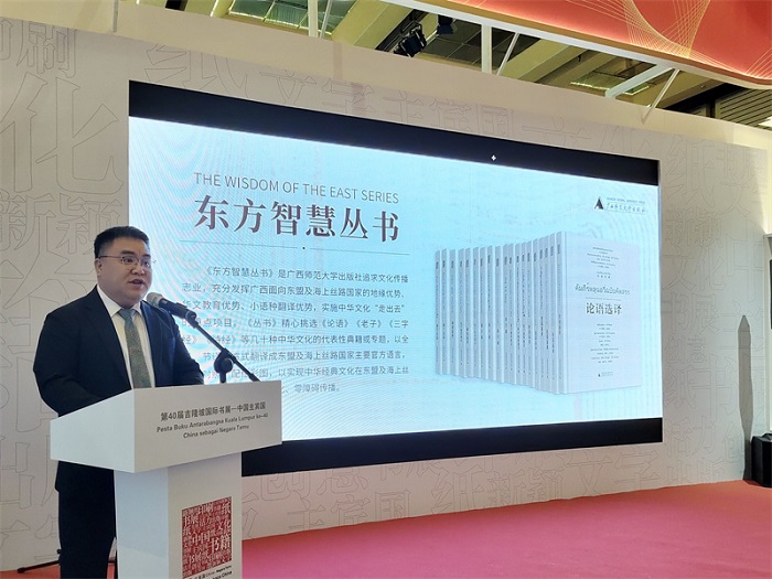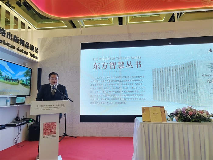 随后举办的是“东方智慧丛书”宣介会。“东方智慧丛书”是广西师范大学出版社集团公司充分发挥广西面向东盟及海上丝路国家的地缘优势、华文教育优势、小语种翻译优势,着力推动文化传播事业,实施中华文化“走出去”的重点项目。丛书精心挑选《论语》《老子》《三字经》等中华文化的代表性典籍或专题,以全译、节译的方式翻译成东盟及海上丝路国家主要官方语言(泰语、越南语、印尼语、马来语、老挝语、柬埔寨语、缅甸语、英语),汉外对照,配绘彩图,以实现中华经典文化在东盟及海上丝路国家的规模化、生动化、零障碍传播。自2015年启动出版以来,丛书已出版95种,图书版权成功输出英国、印度尼西亚、马来西亚等国家。“东方智慧丛书”的汉马对照版现阶段已经出版了14本,这套书有助于加强中马之间的文化交流,进一步增强两国出版界和学术界的沟通交往,让中华文化通过图书的传播深入人心。
