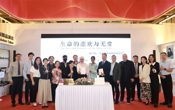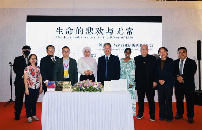 推介会结束后,广西师范大学出版社集团公司还举办了“人生的悲歌与无常”《蝉声唱》马来语版图书发布会。《蝉声唱》是广西作协副主席凡一平先生的作品,以罗光灯、蓝必旺两人戏剧性的命运为线索,讲述了上岭村男人在变化莫测的命运前的不同态度。这是一部寓意丰富的乡土小说,深层揭示了民族文化心理。广西作家协会主席东西、《蝉声唱》作者凡一平也来到了图书发布会现场,并进行了对谈,让更多的马来西亚读者了解中国文学和广西文学。