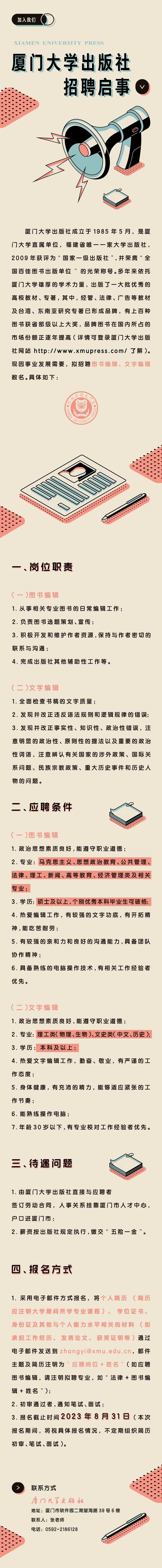 厦门大学出版社招聘启事 - 招聘信息 - 中国高校教材图书网