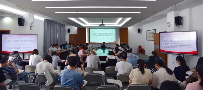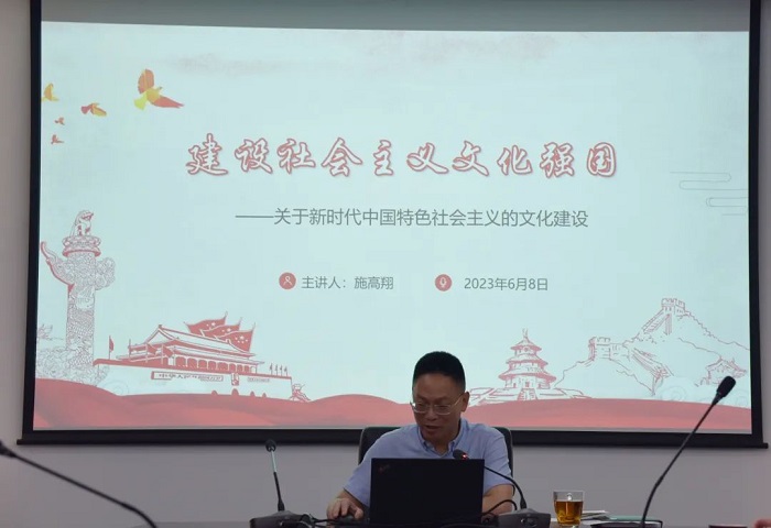 6月8日上午,厦门大学出版社党总支学习贯彻习近平新时代中国特色社会主义思想主题教育专题党课《建设社会主义文化强国——关于新时代中国特色社会主义的文化建设》在社618会议室开讲,党课由总编辑施高翔讲授。厦门大学出版社党员、编校人员参加学习。