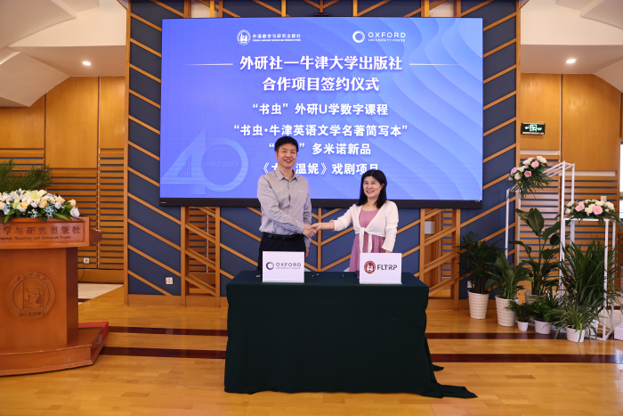 纪念活动现场,双方对40年来合作的经典项目进行了表彰,包括《书虫•牛津英汉双语读物》《外研社丽声拼读故事会》《新未来大学英语》《牛津英汉双解小词典》《温妮女巫魔法绘本》《牛津英语用法指南》等在中国市场上畅销、长销的知名产品,涉及教材、读物、辞书、绘本等多个出版领域。双方同时签约 “书虫”外研U学数字课程、“书虫•牛津英语文学名著简写本”“书虫”多米诺系列、《女巫温妮》戏剧改编等4个新的合作项目,提升品牌传播力。