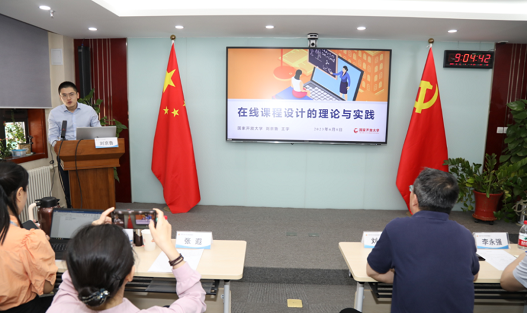 教育教学部刘京鲁介绍了在线课程的设计理论和开发流程。他介绍了系统化教学设计模型及其应用,从课程需求分析、学习者分析、学习过程设计等维度介绍了课程教学设计的要义,分享了“同伴教学法”“co-teaching”“项目式教学法”等教学方法和如何确保在线讨论有效的技能,以国内外若干优质MOOC课程为例,提出了优化在线课程设计的若干建议。
