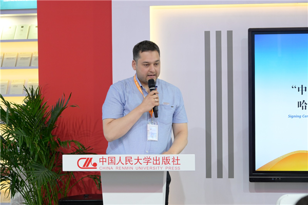 6月16日,在北京国际图书博览会上,中国人民大学出版社与哈萨克斯坦欧亚-阿斯塔纳出版社、乌兹别克斯坦丝绸之路出版社共同举办“中国式现代化研究丛书”(第一辑)哈萨克文、乌兹别克文版权签约仪式,本次签约精选了丛书中已出版的10种图书。中宣部进出口管理局副局长、一级巡视员赵海云,中国人民大学副校长王轶,中国人民大学出版社党委书记、董事长李永强,中国人民大学出版社副社长王磊,欧亚-阿斯塔纳出版社总经理阿达依·赛肯,丝绸之路出版社总经理图利亚加诺夫·欧贝克,丝绸之路出版社总编辑伊尔伽舍夫·康德,丝绸之路创信地产总经理达米尔,丝绸之路出版社董事臧红岩等出席此次会议。签约仪式由王磊副社长主持。