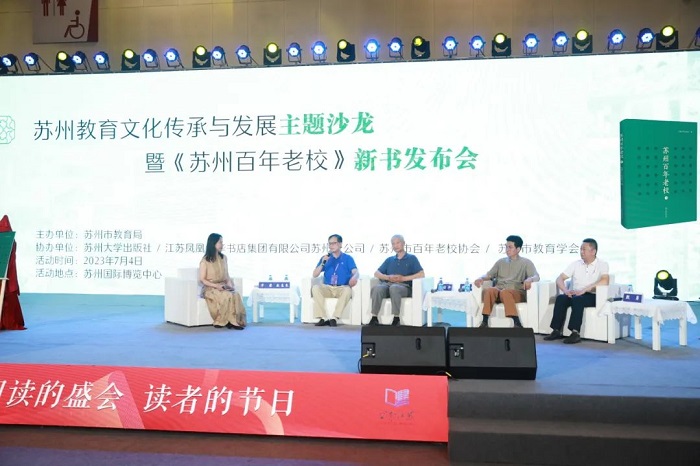2023年7月4日下午,“苏州教育文化传承与发展暨《苏州百年老校》新书发布会”在苏州国际博览中心第十三届江苏书展中心舞台举行,以此探索新时代苏州教育文化与地方优秀传统文化融合发展路径,助推苏州教育文化高质量发展。
