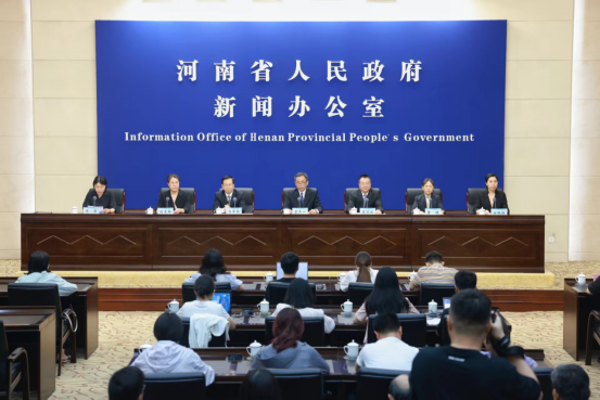 7月6日上午,河南省政府新闻办公室在新闻发布厅召开专场发布会,推介河南大学出版社出版的第三批“中华源·河南故事”丛书。河南大学出版社有关负责同志出席新闻发布会。会议介绍和解读了第三批“中华源·河南故事”中外文系列丛书的具体内容。