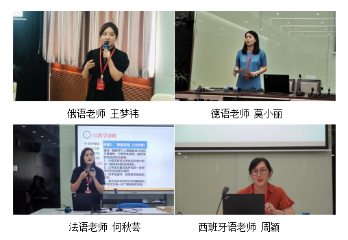 西安外国语学校的王梦祎老师、杭州绿城育华学校的莫小丽老师、中山华辰实验中学的何秋芸老师和上海外国语大学附属外国语学校东校的周颖老师分别进行了俄语、德语、法语和西班牙语课程展示与教学经验分享。刘娟教授、王露杨副教授、萨日娜教授和郑皓瑜副教授分别对老师们的课例给予了高度赞扬并进行了细致的点评与分析。