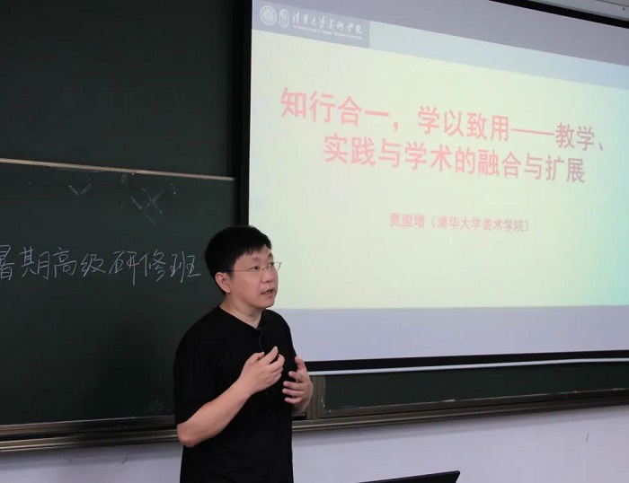 清华大学美术学院贾玺增教授主讲的课程是“学以致用,知行合一——教学、实践与学术的融合与扩展”。他从《中国服装史》课程的知识构建与教材建设,中国传统服饰文化研究、应用与转化,服装史与时装设计相结合的特色教学,中国服装产业升级之路的探索,传统东方文化视觉表达的尝试五个方面展开授课,与学员分享他在精品课程、教材建设方面多年的研究成果和经验。