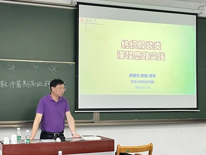 东华大学纺织学院郭建生教授主讲的课程是“纺织服装类课程思政实践”。他从课程思政的概念与内涵、课程思政教学的方法和要点、思政元素的挖掘与设计、课程思政实践等方面对纺织服装类专业课程的思政教学设计进行了阐释,并通过纺织品整理学、服装工程导论、服装生产管理等具体课程进行案例说明及实践思考。