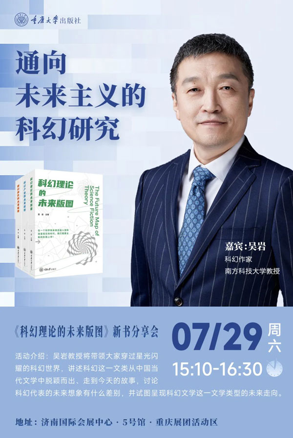 第31届全国书博会期间,知名科幻作家吴岩将携新书做客书博会,并作精彩讲座,主题为:“通向未来主义的科幻研究”,科幻读者届时可一饱耳福。