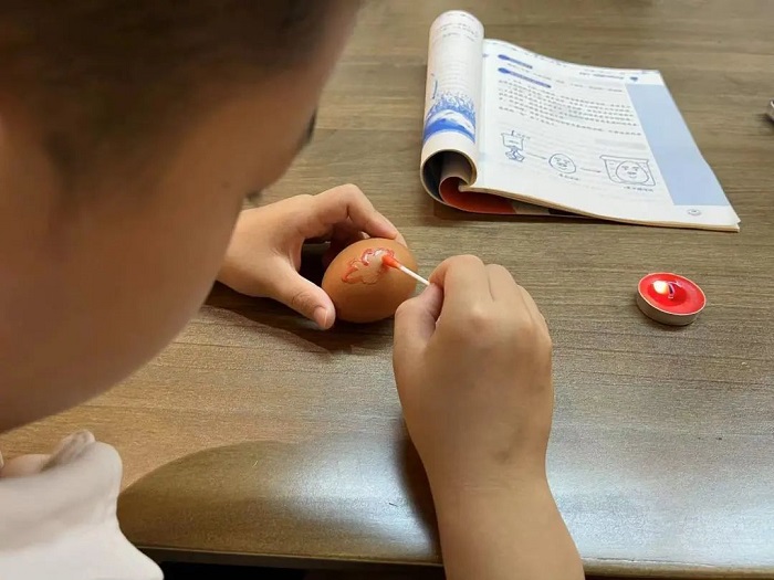 在“在鸡蛋上写字作画”小实验中,当白醋与蛋壳(主要成分碳酸钙)发生化学反应,蛋壳逐渐变薄,“小小实验家”亲手绘制的图画在蛋壳上清晰显现。