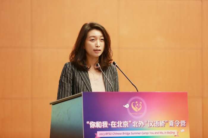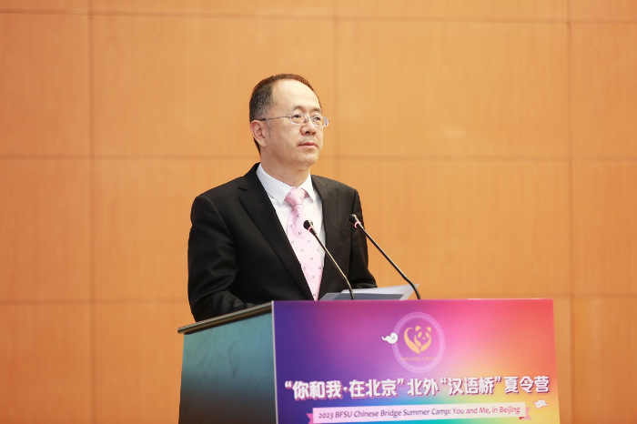 贾文键在致辞中提到,“你和我·在北京”是北外国际中文教育交流的传统项目和品牌项目,至今已走过十余年的光阴,累计接待来自世界各国的1000余名中文学习者来华研习,感受中文魅力,体验多彩北京,理解当代中国。他希望营员们能够通过夏令营期间丰富的语言实践课程、文化欣赏体验和多元文化交流活动,彼此了解,相互学习,建立友谊,日后成为不同文化之间的交流使者、不同文明之间的传播先锋、不同国家之间的友谊桥梁。