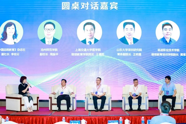 沧州师范学院副校长周振平,上海交通大学医学院继续教育学院院长王福胜,山东大学深圳研究院常务副院长王明星,杨凌职业技术学院乡村振兴学院、村干部(农民)发展学院、继续教育与培训学院院长黄璞围绕“三教”协同创新发展这一主旨议题进行了对话交流。他们分享了对“三教”协同创新的理解,详细介绍了各自学校(学院)在推进“三教”协同创新方面的具体措施、实际成效,剖析了推进过程中遇到的困难,并对“三教”协同创新的未来进行了展望。对话环节由《中国远程教育》杂志社副社长李桂云主持。