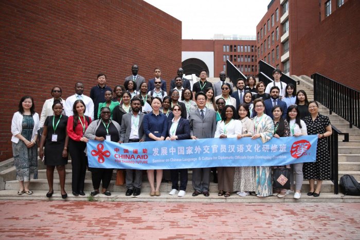 与“发展中国家外交官员汉语文化研修班”学员合影留念