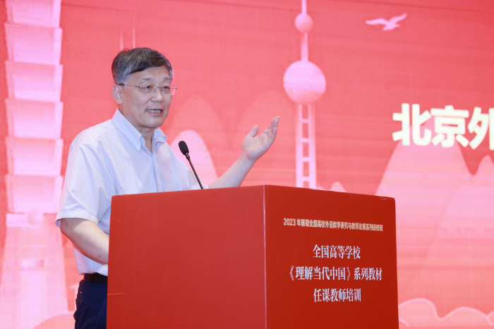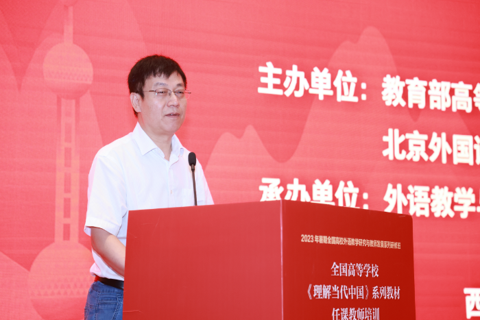 2023年8月2—3日,由教育部高等学校外国语言文学类专业教学指导委员会、北京外国语大学主办,外语教学与研究出版社承办的“全国高等学校《理解当代中国》系列教材任课教师培训”成功举办。教育部高等教育司相关负责同志、省级教育行政部门相关负责同志、教育部高等学校外国语言文学类专业教学指导委员会委员、《理解当代中国》系列教材编写团队和各语种任课教师共计4万余人线上线下参会,深入领会“三进”教学要求,提升教师育人育才能力,推动外语自主知识体系创新,共助高等外语教育高质量发展。