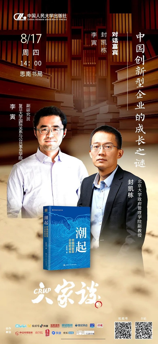 封凯栋和李寅两位京沪青年学者将围绕“中国创新型企业的成长之谜”展开讨论,探寻中国科技自立自强的力量之源。