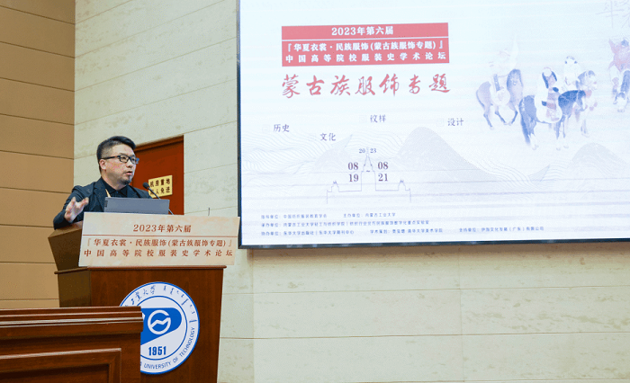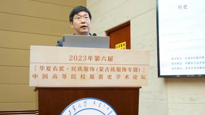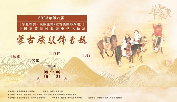 8月19日,2023年第六届“华夏衣裳·民族服饰(蒙古族服饰专题)”中国高等院校服装史学术论坛在内蒙古工业大学举行。本届论坛由中国纺织服装教育学会担任指导单位,清华大学贾玺增教授担任学术策划,内蒙古工业大学主办,内蒙古工业大学轻工与纺织学院、纺织行业北方民族服饰数字化重点实验室承办,东华大学出版社、东华大学期刊中心、全国少数民族服饰保护传承标准化技术委员会协办。论坛得到了伊伽文化发展(广东)有限公司、国家羊绒制品工程技术研究中心、内蒙古德昇绒毛制品有限责任公司、内蒙古租衣歌服饰有限公司、内蒙古安力泰科技有限公司、内蒙古赞蓝文化产业发展有限公司的大力支持。