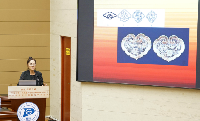 内蒙古工业大学轻工与纺织学院闫亦农教授发言的题目是“蒙古族刺绣纹样的艺术构成和文化解读”。她说到,蒙古族刺绣是中华民族艺术的重要组成部分,其种类繁多、色彩艳丽、工艺精美,记录着蒙古族的历史沿革、文化观念以及民族信仰,同时也是民族身份的标识,是中华民族独特的艺术符号。在历史的发展过程中,蒙古族刺绣纹样受到多种文化的影响,其艺术表现形式呈现出多元化的状态,但仍具有本民族鲜明的文化特色。对蒙古族刺绣纹样工艺技法、图案构成形式以及装饰特色进行分析,有助于解读其背后所蕴含的民族文化意蕴。