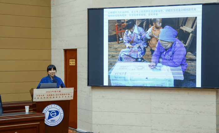 西安工程大学刘冰冰副教授以“侗族服饰纹样的文化象征”为题发言。侗族服饰文化是侗族传统文化的重要组成部分。侗族服饰工艺精湛、图案丰富、民族特色鲜明。精美的饰品和刺绣纹样象征着侗族妇女的勤劳与智慧,承载着种族繁衍与民族兴旺的美好期盼。侗族服饰纹样所承载的内容丰富,不同纹样刺绣于服饰上,也有不同象征寓意,它既是侗族人民源远流长的文化遗产,又是现代文化的组成部分。侗族服饰在不同区域演化出了不同风格,但其服饰纹样的象征寓意是相同的,体现了侗族人民崇尚人与自然、理性与情感的相融与统一,反映了侗族文化更为深远的文化内涵。