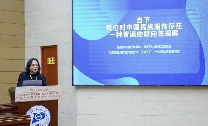 在论坛学术总结中,贾玺增教授介绍了本次论坛四个板块的设计思路。根据论坛的主题“民族服饰·蒙古族组服饰”,第一板块“历史:蒙古族服饰”直接点名主题;第二板块“文化:北方服饰”从更宏观的角度阐释民族服饰,是第一板块的延申,和第一板块形成互动;作为第三板块的“纹样:西南服饰”是民族服饰的深入阐述;第四板块“设计:传承创新”从设计实践的维度进行展开,和纹样板块相互支撑,相互补充。