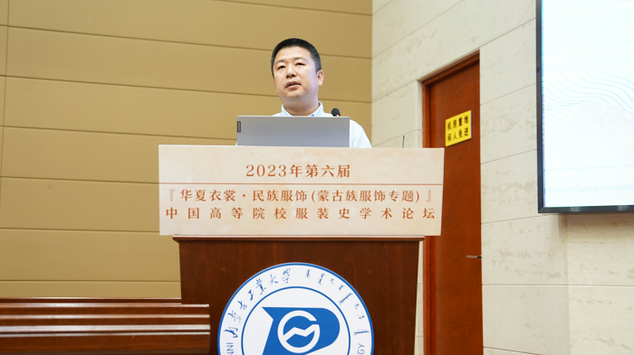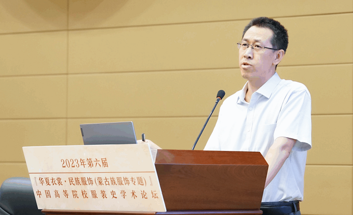 内蒙古自治区艺术研究院、非遗保护中心培训部主任董小健在致辞中说到,内蒙古自治区连续举办了十七届内蒙古服装服饰文化艺术节,即内蒙古服饰大赛。多年来,艺术研究院致力于蒙古族服饰的数字化、历史资料的收集、整理和出版工作,也组织了多次专场展示,推动蒙古服饰对外交流,进行了一些探索,也取得了一些重要成果,增强了蒙古族服饰的传承活力,提高了服饰文化的可见度和影响力。希望通过本次论坛,有更多机会与各位专家学者进行交流合作,推动蒙古族服饰文化更好的保护和传承,为传承和弘扬中华优秀传统文化、打造文化品牌作贡献。