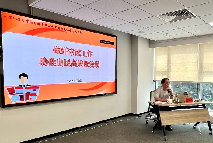 王政红教授的讲座从习近平同志关于出版工作的重要论述、出版相关的法规和审读常用标准规范、出版质量问题案例分析、加强质量建设四个方面展开,阐释了审稿环节对书稿进行科学分析和判断的重要性。他在讲座中强调:编辑要从高质量出版的角度,对书稿内容进行由表及里、由浅入深、全面反复的审视,切实检查书稿政治性、科学性、艺术性和知识性问题。