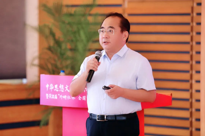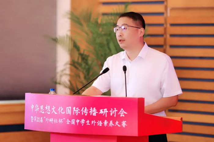 丁浩副校长在致辞中表示,北京外国语大学服务国家战略,响应时代需求,凝聚学科优势,持续挖掘“全球语言、全球文化、全球治理”的领域资源,致力于培养“有家国情怀、有全球视野、有专业本领”的复合型人才,承担“中华思想文化术语传播工程”等多个国家重大项目,积极推动国际传播能力建设,支持构建新时代中国对外话语体系,为中国参与全球治理贡献力量。他希望“外研社杯”全国中学生外语素养大赛与中华思想文化术语的结合,能够加深青少年对中华传统思想文化的理解,提升青少年用外语讲好中国故事的素养。