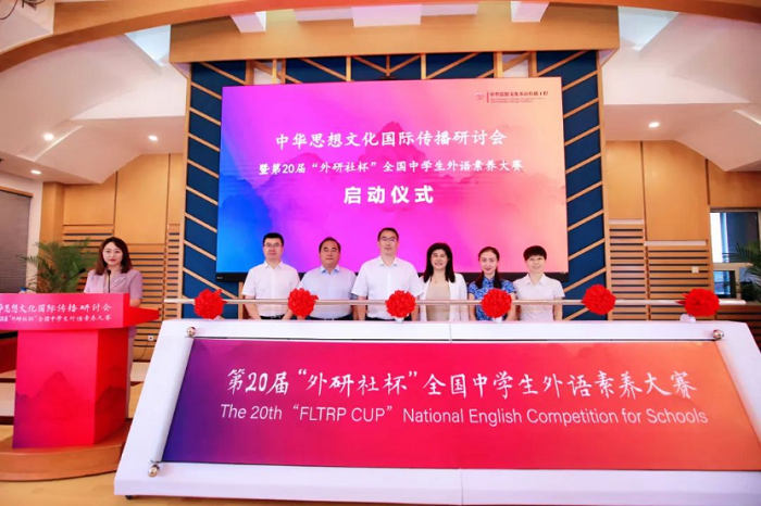 北京外国语大学党委常委、副校长、“中华思想文化术语传播工程”学术委员丁浩,外研集团党委书记、董事长,外研社社长王芳,中国教育学会国际教育分会秘书长张东升,北京师范大学国际与比较教育研究院副院长滕珺,北京外国语大学国际教育学院副院长苑大勇,外研社副总编辑、“中华思想文化术语传播工程”秘书处负责人、学术委员章思英共同启动了第20届“外研社杯”全国中学生外语素养大赛。