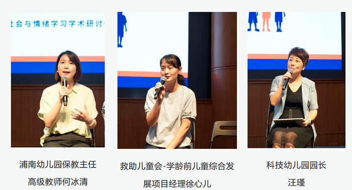 下午,会议通过圆桌会议,从不同角度探讨幼儿园如何在区域层面推进早期儿童的社会与情绪学习,如何通过带动整个园所教职人员的共同参与,如何通过集体教学活动、一日生活活动以及家园社共育,推进儿童的早期社会与情绪学习。圆桌会议由华东师范大学出版社学前少儿分社副社长蒋将老师主持,虹口区教育学院学前教研室主任学前教研员许玭、青浦区教师进修学院学前段科研员黄开宇、长宁区教育学院幼教科研员汪光珩、科技幼儿园园长汪瑾、浦南幼儿园保教主任、高级教师何冰清、救助儿童会-学龄前儿童综合发展项目经理徐心儿等教育专家基于自身的经验就社会与情绪学习的重要性和实践落实发表观点。