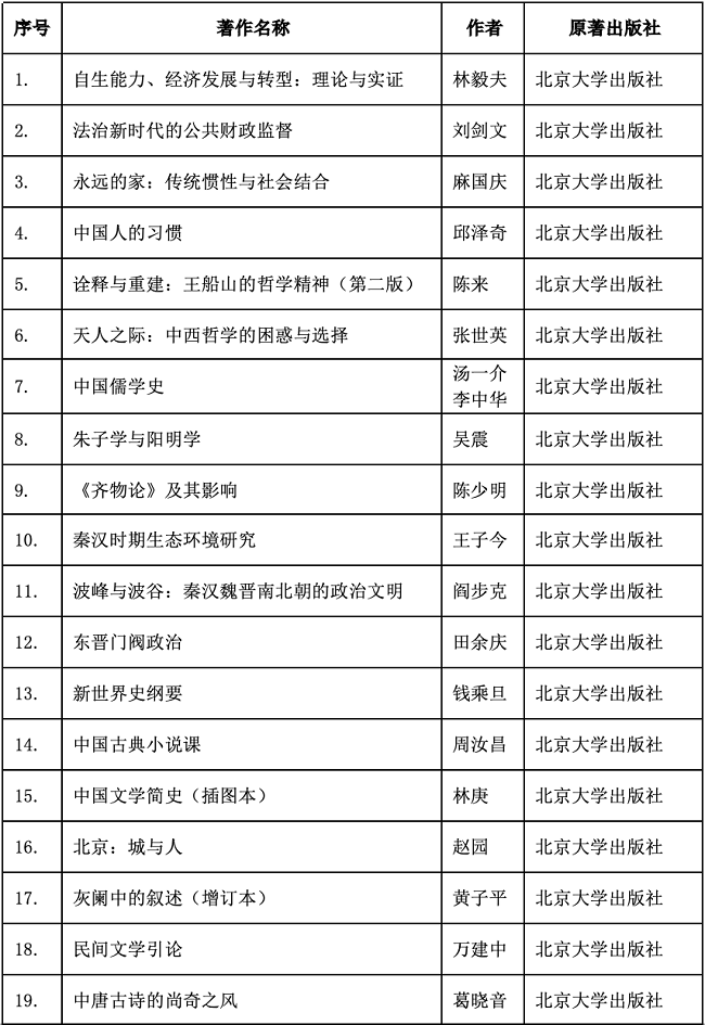 附:北京大学出版社入选《国家社科基金中华学术外译项目推荐书目(2023)》图书