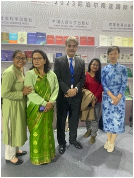 印中经济文化促进会秘书长、经济学家穆罕默德·萨奇夫,文化纪录片媒体专家罗尚,尼泊尔特里布万大学中央政治学系教授、前系主任米娜·维迪亚•马拉,尼泊尔特里布万大学图书馆与信息科学助理教授莱拉·娜士雅,尼泊尔中西大学国际合作与发展硕士项目教师纳迪塔·卡德吉等来自印度、尼泊尔的专家学者参观人大出版社展台,并就中国学术图书在印度和尼泊尔的出版和推广交流意见。