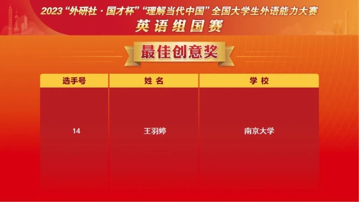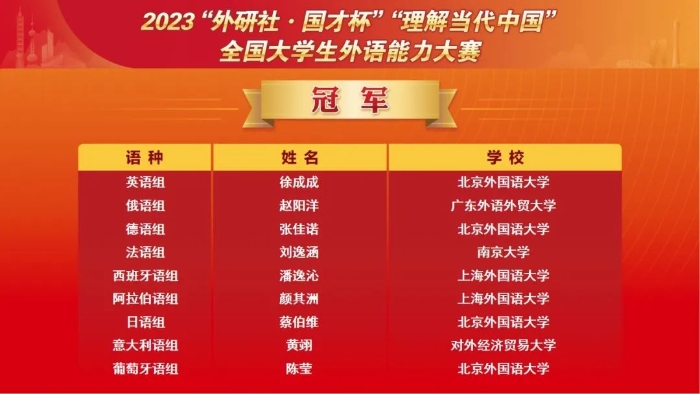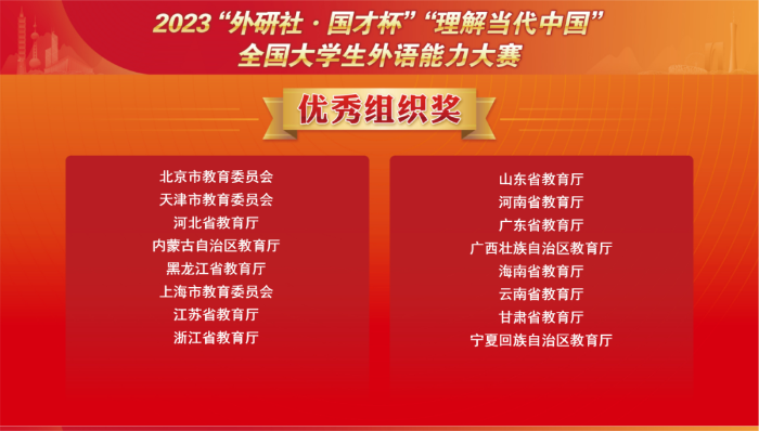 今日之中国,气象万千;今日之青年,前程远大;今日之赛事,传承永恒。2023“外研社•国才杯”“理解当代中国”全国大学生外语能力大赛,立足时代发展潮流、服务国家重大发展战略、推动外语教学创新改革,积力所举、众智所成,引导当代中国青年与时代同向同行,发青春之声,扬奋斗之志,奏强国之音,为推动中国更好走向世界,世界更好了解中国做出卓越贡献!今日盛会已落幕,明年再续新华章!