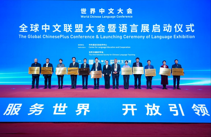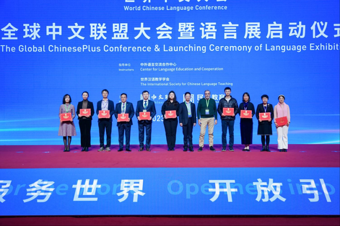 2023年12月7日,2023世界中文大会期间,首届全球中文联盟大会在北京国家会议中心召开。外研社荣获2023年度中文联盟数字化教育金牌合作机构,外研社建设的《跨越丝路》中学汉语课程(阿拉伯语版)荣获“金课”称号。外研社党委副书记、副董事长、总编辑刘捷,外研社中国语言文化出版分社社长鞠慧分别代表外研社接受奖牌和证书。