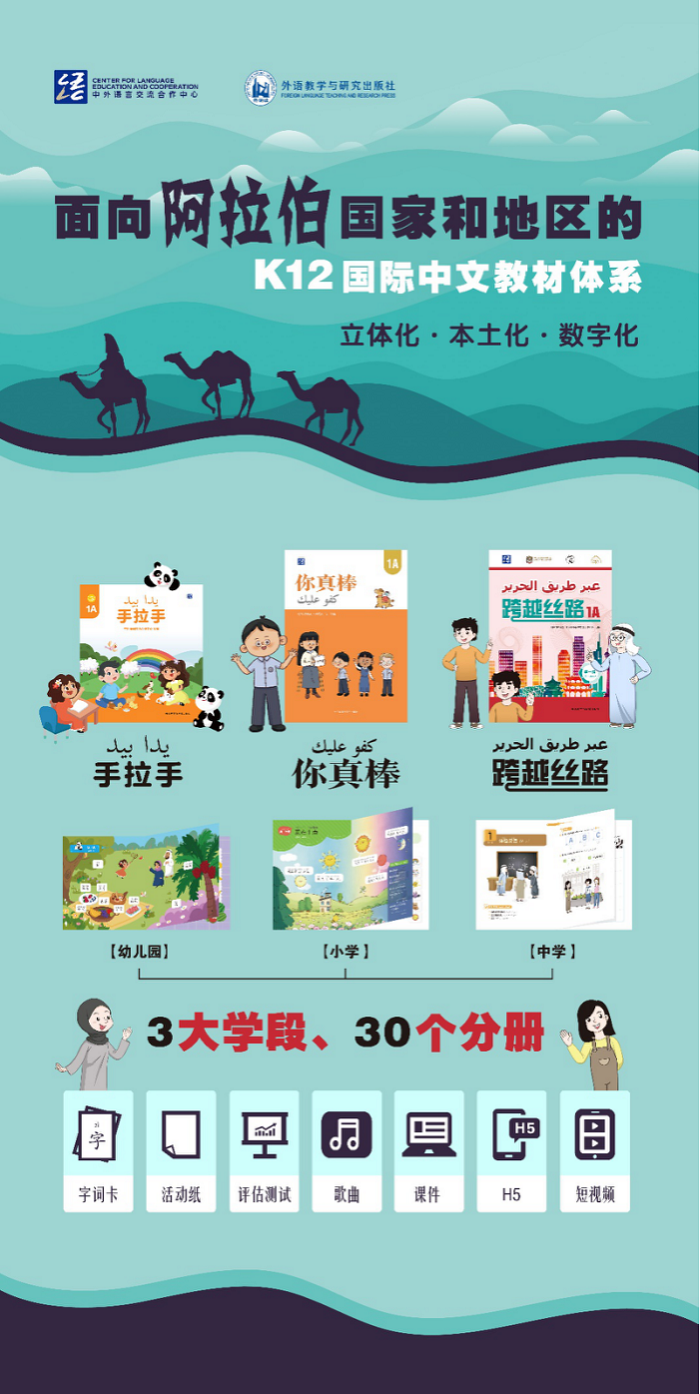 《跨越丝路》中学汉语课程以外研社出版的《跨越丝路》阿联酋中学汉语教材为基础,针对阿拉伯语母语者的学习特点进行打造。课程分12个级别,包含丰富的教学资源,除课程视频外,配套词卡、图卡、游戏活动、练习纸、配套课件、评估测试方案等学习材料。
