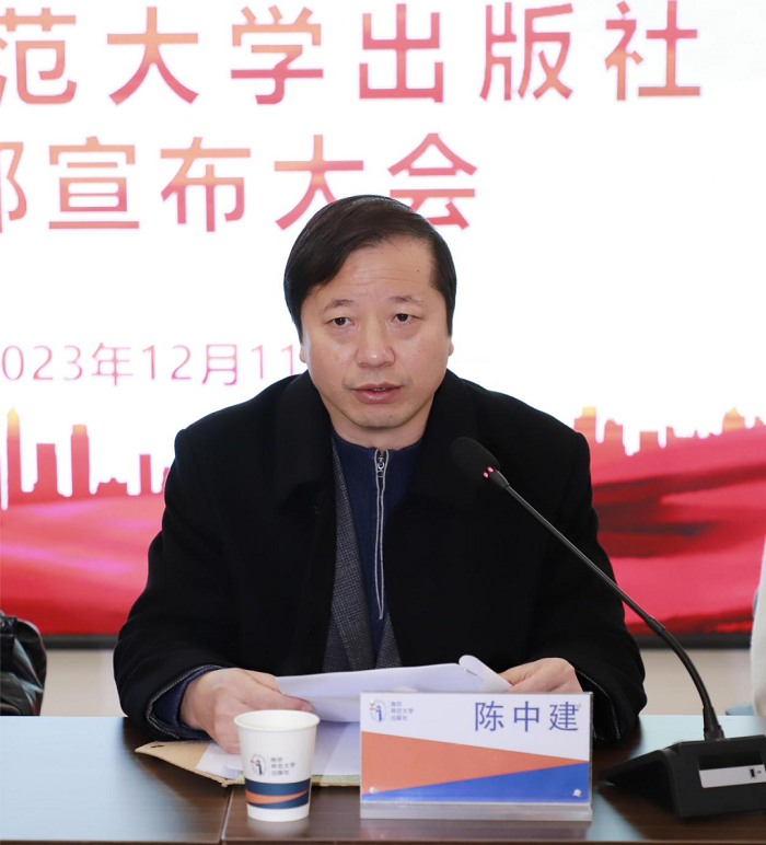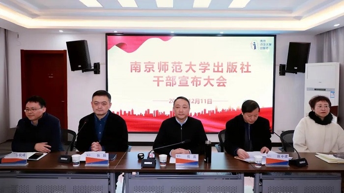 2023年12月11日上午,南京师范大学出版社召开干部宣布大会,南京师范大学党委常委、副校长岳嵩,党委常委、组织部部长、统战部部长陈中建出席会议。南京师范大学出版社党政联席会议成员、各部门负责人和全体员工参加会议。会议由张鹏主持。