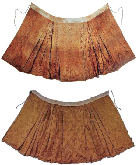 (明代宁靖王夫人吴氏墓出土的折枝团花缎马面裙)
