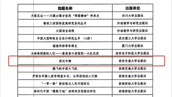 近日,教育部办公厅印发《教育部办公厅关于公布2023年教育部主管出版单位主题出版入选选题名单的通知》,公布了2023年主题出版入选选题名单,西安交通大学出版社《西迁巾帼》入选。