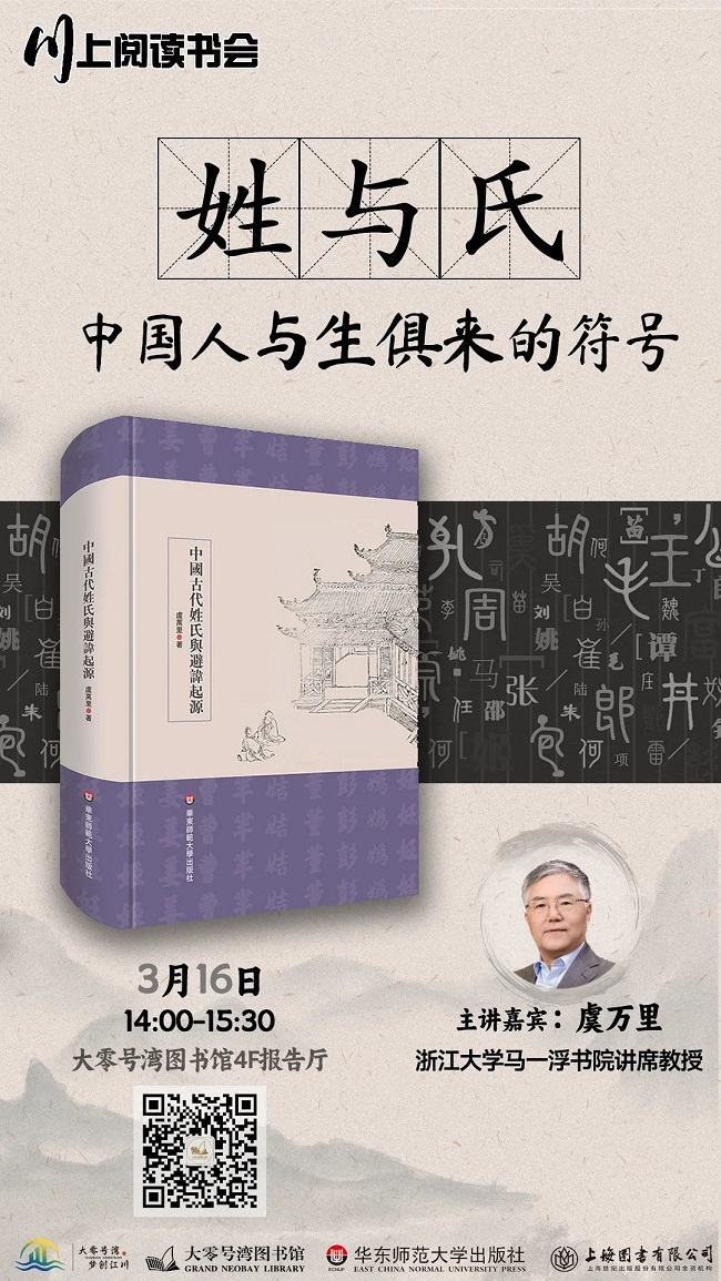 3月16日14:00,虞万里先生将作客闵行区大零号湾图书馆,为广大读者解读其新著,探讨关于中国姓氏与避讳的话题。