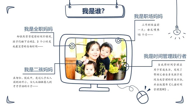 她是时间管理深度践行者,她把时间管理法用于家庭生活,不仅提升了自己家庭的幸福指数,她把这些经过实践验证确实有效的时间管理方法,还攒成了一本书——《打败吃时间的怪兽》,并参与设计和出版过多个Lapbook折叠大书项目。此外,她还是“外滩教育”新媒体签约作者,曾多次发表亲子教育热门文章。