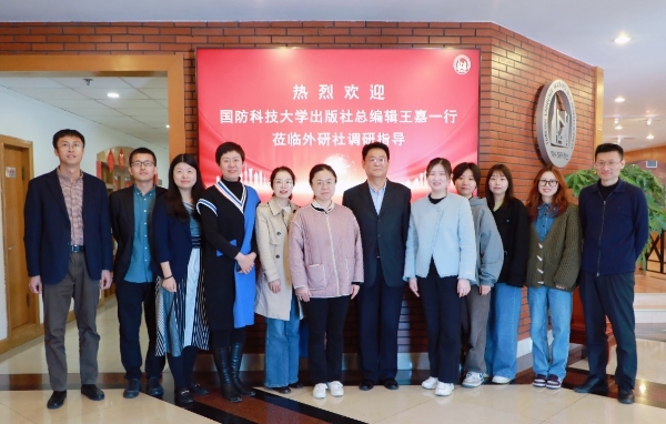 国防科技大学出版社图书编辑部主任魏云江、总编室主任周蓉,编辑马乙群、卜晓瑾、邓磊,外研社办公室主任魏国、综合语种教育出版分社社长邹皛白、副社长周朝虹、出版中心副总监马建利、编务中心总编室副主任李学鹏参加了调研座谈。