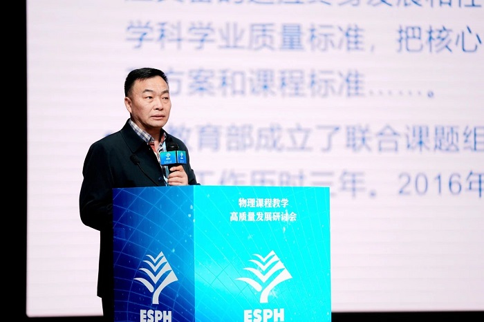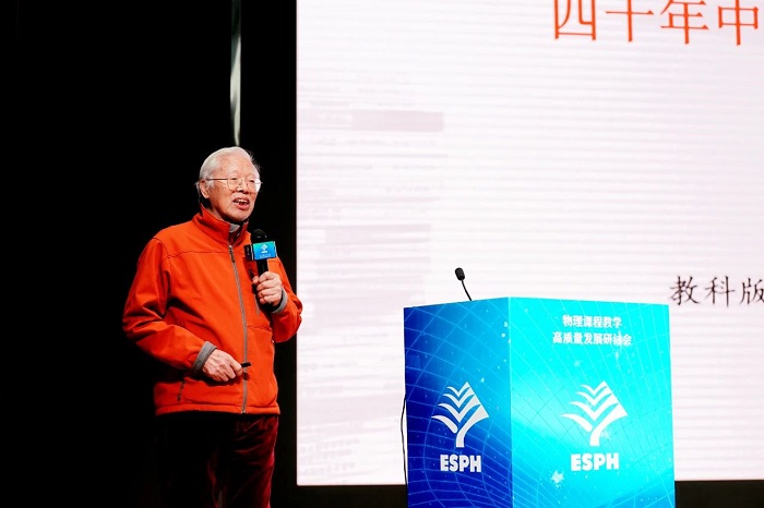 教科版义务教育和普通高中《物理》教材总主编吴祖仁以“四十年中学物理课程改革研究实践与体会”为题,梳理了自1984年“全国中学物理教学改革学术讨论会”以来我国物理教育四十年的改革探索征程,介绍了在由三维目标向核心素养理念转变的过程中,教科版义务教育《物理》教材借助脑科学学习理论,构建了横向的知识问题结构和纵向的主题能力学习活动,帮助学生在研究设计、实践制作、讨论交流中提升核心素养。