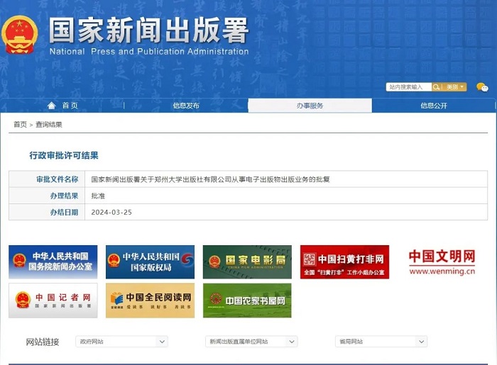 3月25日,国家新闻出版署对郑州大学出版社电子出版物出版业务予以批复,为郑州大学出版社开展融合出版、加强数字教材建设与管理、服务教育教学建设实际需求提供了资质保障,为优化产品结构、创新发展模式、转化出版优势资源提供了重要支持。