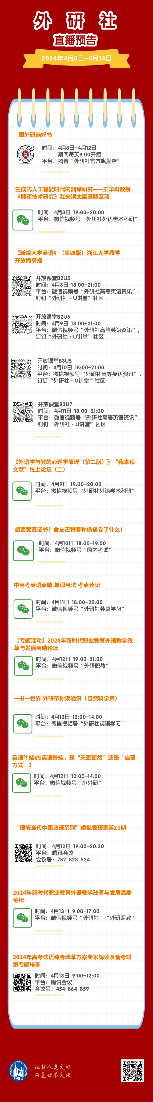 外研社一周直播预告(4月8日-14日) - 在线直播活动预告 - 中国高校教材图书网