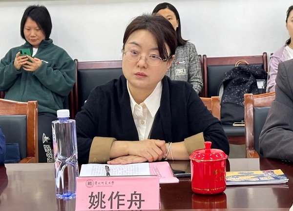 姚作舟代表贵州师范大学对贵州大学出版社一行的到来表示欢迎和感谢,并简要介绍了学校的历史沿革、学科建设、师资队伍、教学科研、学术成果等情况。她表示贵州师范大学历经八十余年奋进历程,逐步发展成为教育特色鲜明、学科丰富多元、教学成果显著的师范大学,在学术科研、文化建设上取得了一定成绩;贵州大学出版社作为全省唯一的高校出版社,多年来为贵州的教育发展、文化建设提供了强大助力,希望双方共同协作,积极做好“四大文化工程”研究成果的出版,更好地服务贵州教育、文化事业和经济社会发展。