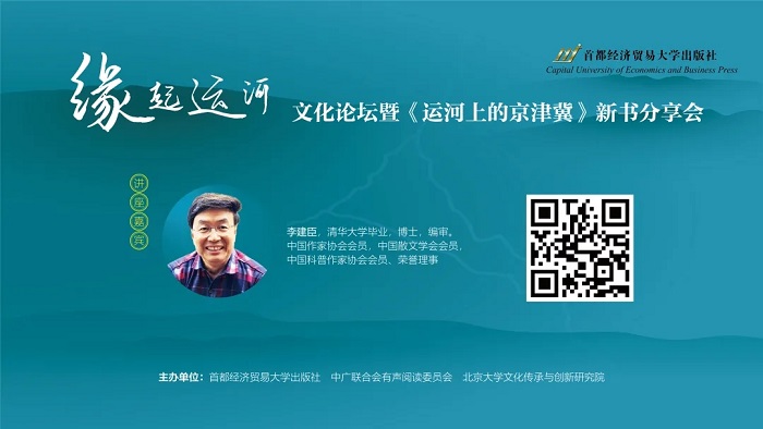 第29个“世界读书日”前夕,为庆祝京津冀协同发展战略十周年和中国大运河申遗成功十周年,首都经济贸易大学出版社与中广联合会有声阅读委员会、北京大学文化传承与创新研究院携手,共同举办了“缘起运河”文化论坛暨《运河上的京津冀》新书分享会。著名文化学者、中国作家协会会员、运河研究资深专家、该书主编李建臣先生现场做了《北京与运河》讲座。