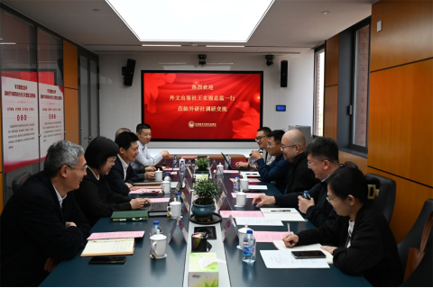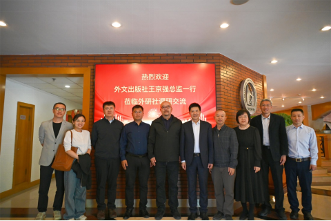 2024年4月24日,外文出版社经营总监王京强一行到访外研社调研,外研社副总编辑彭冬林会见了王京强一行,双方就出版融合发展与数字化管理平台建设等话题进行了深入交流与探讨。