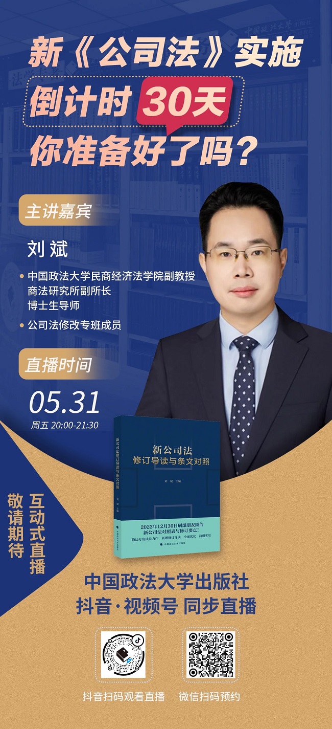 中国政法大学出版社抖音、视频号双平台同步直播 预约直播,不容错过!
