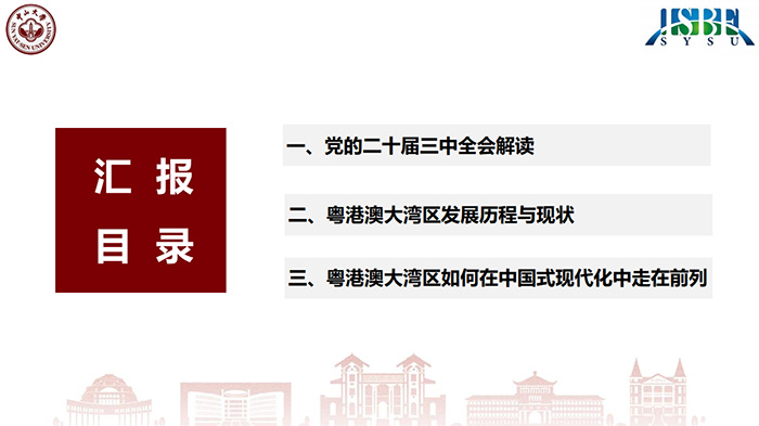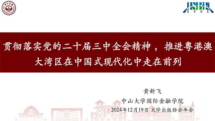 12月19日上午,大学出版主论坛在中山大学深圳校区图书馆举办。黄新飞作《贯彻落实二十届三中全会精神,一体化推进粤港澳大湾区建设》主题报告,他从七个方面进行解读:一是构建高水平社会主义市场经济体制;二是健全推动高质量发展体制机制;三是健全宏观经济治理体系;四是完善城乡融合发展体制机制;五是推进高水平对外开放;六是健全保障和改善民生制度体系;七是深化生态文明体制改革。他强调,粤港澳大湾区建设在新时代背景下具有重要意义,他从实践演进、战略定位、空间布局、产业结构、人口规模等方面详细阐述了粤港澳大湾区发展历程与现状。他提出,应充分发挥粤港澳大湾区独特优势,加强区域合作,共同推进基础设施建设、科技创新、金融支持等关键领域的发展,努力在中国式现代化进程中走在前列。