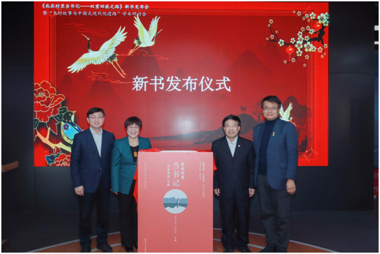许庆红、邱显清、史安斌与赵月枝共同为 《我在村里当书记——双重回嵌之路》新书首发揭幕