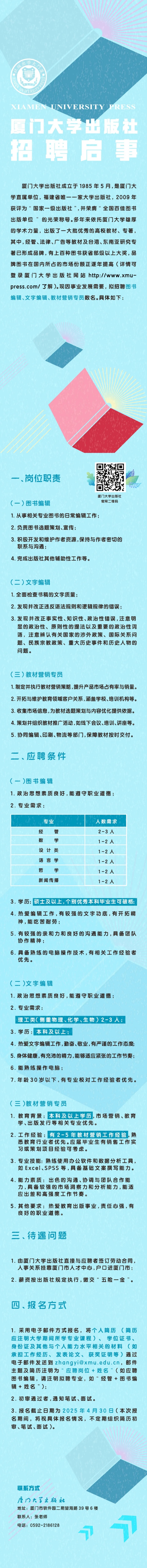 厦门大学出版社招聘启事 - 招聘信息 - 中国高校教材图书网