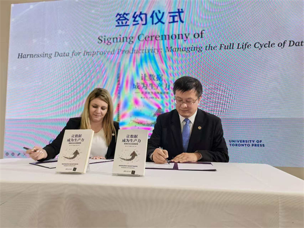 多伦多大学出版社副社长安东尼娅·波普(Antonia Pop)在致辞中回顾了双方合作历程,提到2010年清华社与多大社在学术专著的出版上开启了合作序幕。去年6月,双方就版权合作、图书出口及期刊合作等议题进入了深入交流并达成多项共识。在数字化浪潮席卷全球的今天,此次的合作聚焦于如何将数据——这一“新时代的石油”转化为推动社会持续发展的核心动力。合作不仅实现了知识的跨洋传播,也是对全球数字化进程的有力回应。